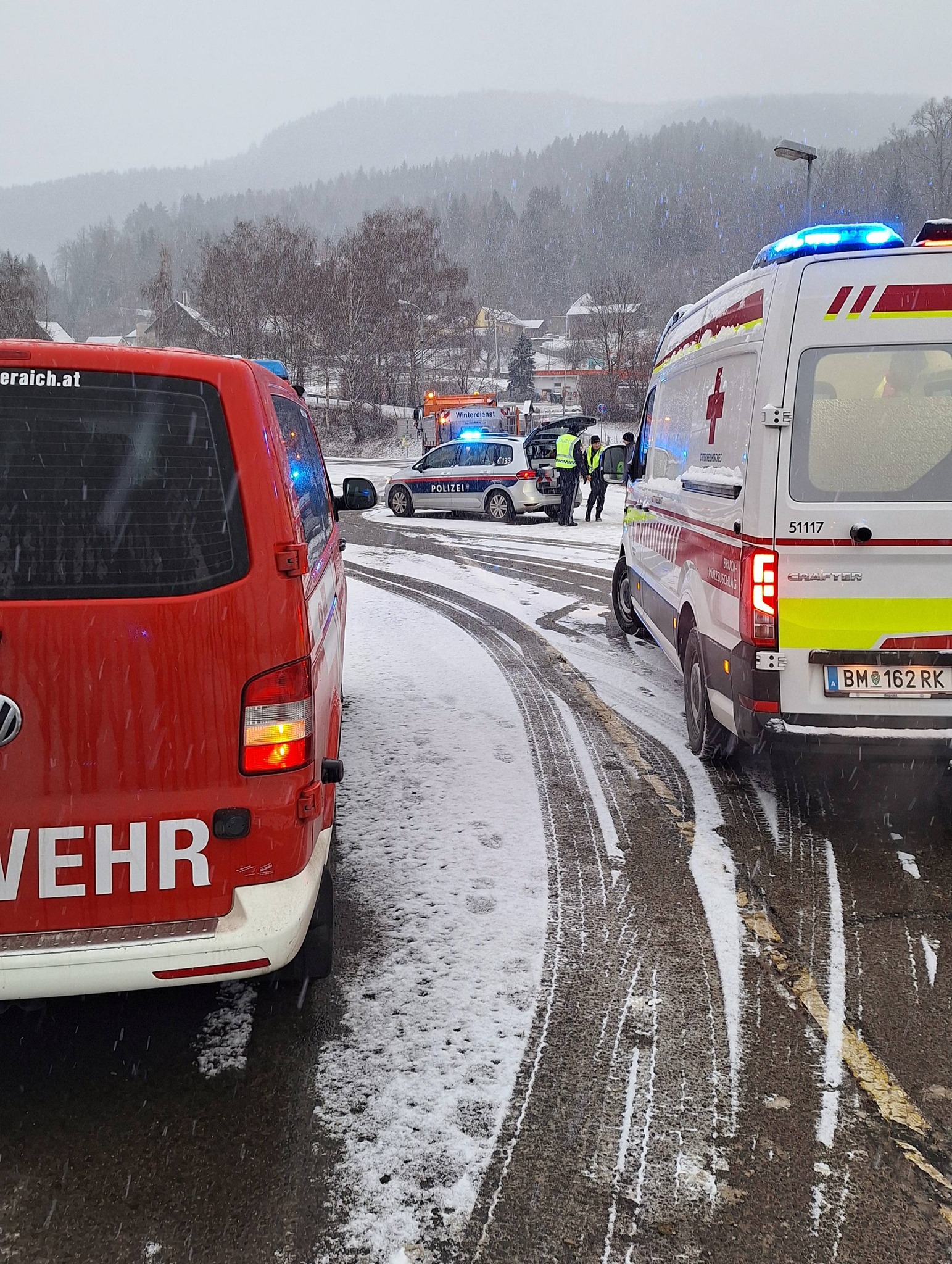 Kreuz versorgt und in das LKH Leoben gebracht. Die Feuerwehr baute einen