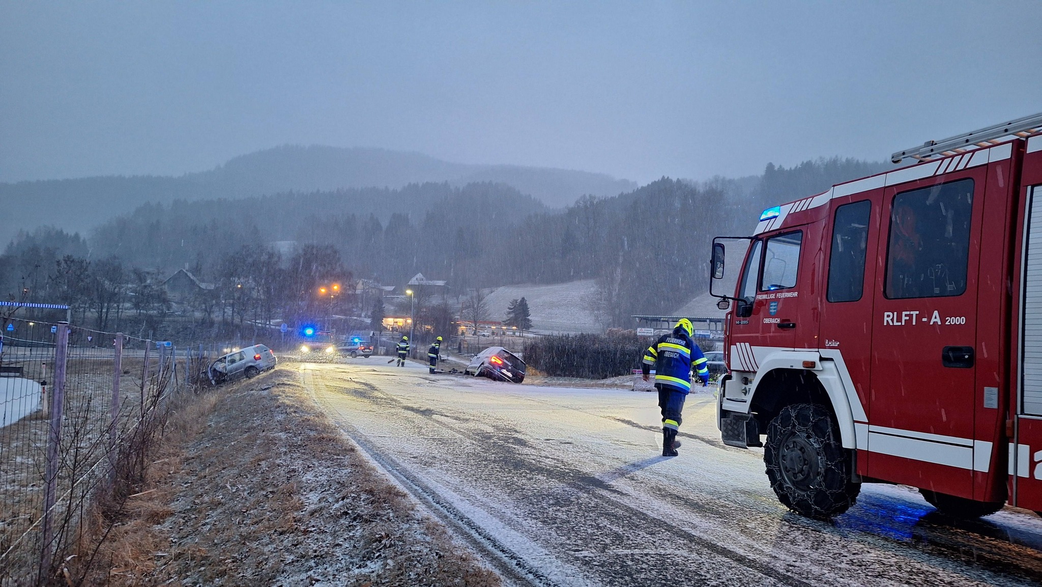 Am Einsatzort angekommen wurden 2 PKW's im Straßengraben vorgefunden. Die verletzten Personen wurden vom anwesenden RK Team versorgt und anschließend ins LKH Leoben eingeliefert. Die Feuerwehr sicherte die Unfallstelle ab und beseitigte Fahrzeugteile von der Fahrbahn. Die Gemeindestraße war für die Dauer der Bergungsarbeiten für den Verkehr gesperrt.Im Einsatz:FF Oberaich, 2 Fzg. RK Bruck, 2 Fzg. PI Bruck, 2 Fzg. Koman GmbH Pannen- Berge- Abschleppservice, 2 Fzg.