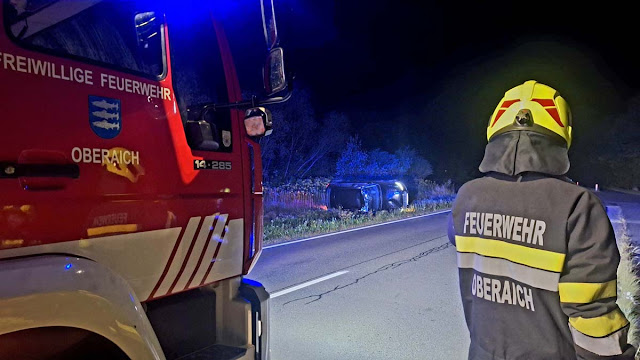 17.08.2025 | 01:30 Uhr Sirenenalarm für FF Oberaich: T03V-VU mit Verletzter Person, B116 PKW Überschlag KM 17.5Umgehend rückt das Rüstlöschfahrzeug mit 7 Mann zum Einsatzort aus. Am Einsatzort angekommen konnte ein PKW mit 3 Insassen welche bereits aus dem Fahrzeug waren, vorgefunden werden. Kurz darauf traf auch das RK sowie eine Polizeistreife ein.Die Feuerwehr leuchtete die Unfallstelle aus, baute einen Brandschutz auf und war beim Abtransport des Fahrzeuges behilflich.Zum Glück wurde bei diesem Unfall keiner verletzt. Nach über einer Stunde konnten wir wieder in das Feuerwehrhaus einrücken.Im Einsatz standen:FF Oberaich Rotes Kreuz Leoben PI BruckKoman GmbH Pannen- Berge- Abschleppservice
