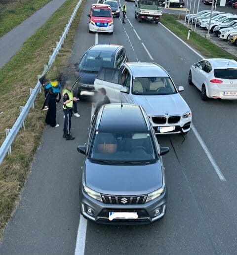 Kreuz Bruck a. d. Mur mit mehreren Fahrzeugen