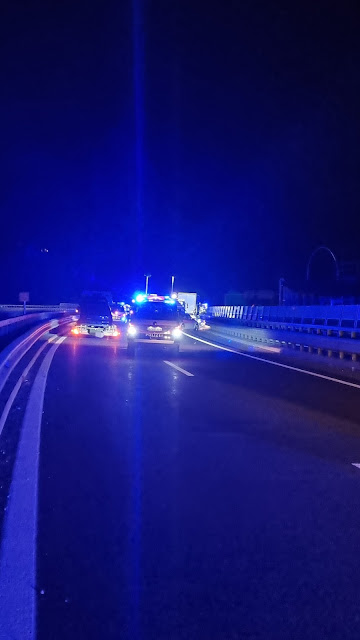Unfall gesucht. Bei KM87 wurden dann eine touchierte Betonleitwand und